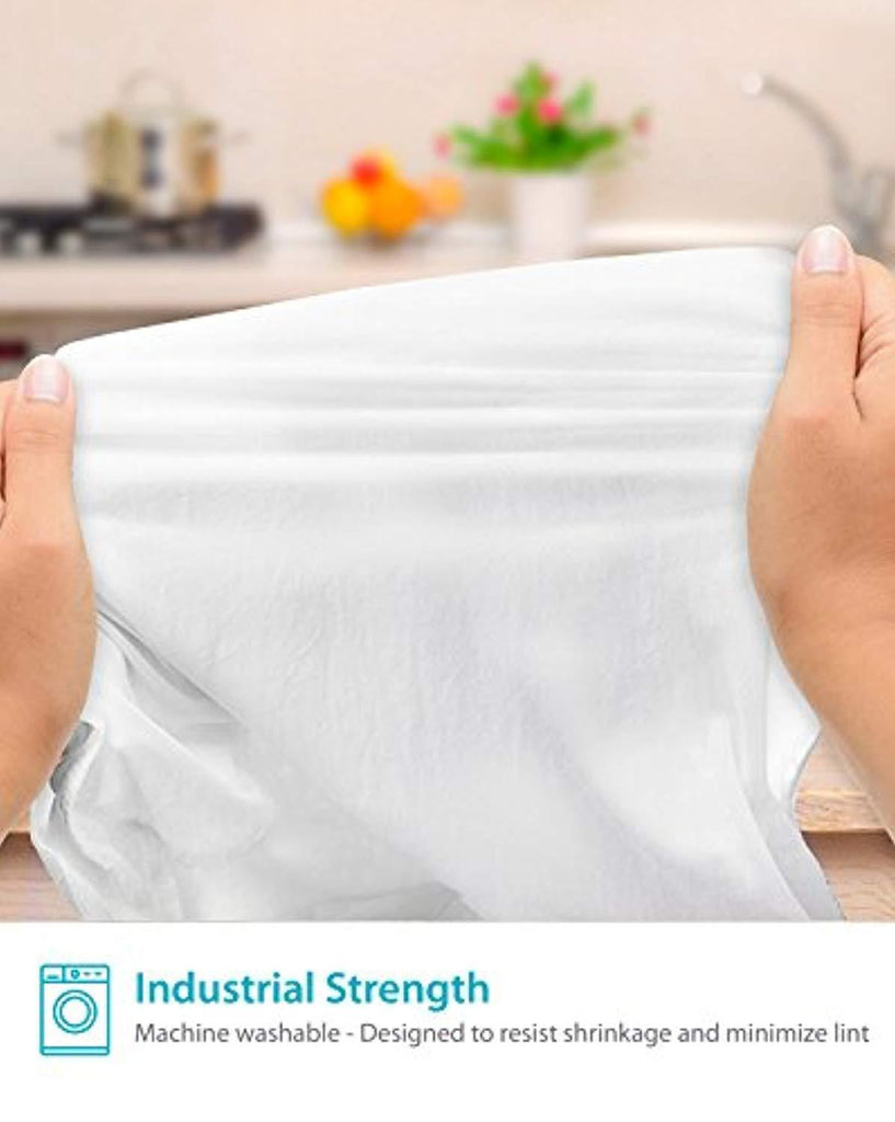 HIGH QUALITY; These towels have strong machine stitched edges, measure 31 x 31, and designed to resist shrinking and shedding lint. For maximum results, wash towels before initial use to improve absorbency and minimize lint