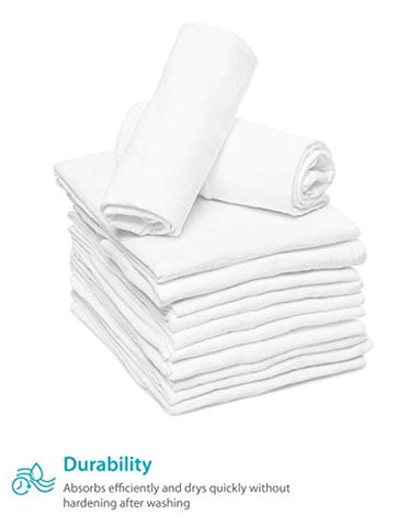 STURDY AND LONGLASTING; Flour sack towels are sturdy, highly absorbent, dry quickly, and are designed to stand up to most any cleaning job; Set of 12 provides plenty of towels to handle all your household cleaning needs