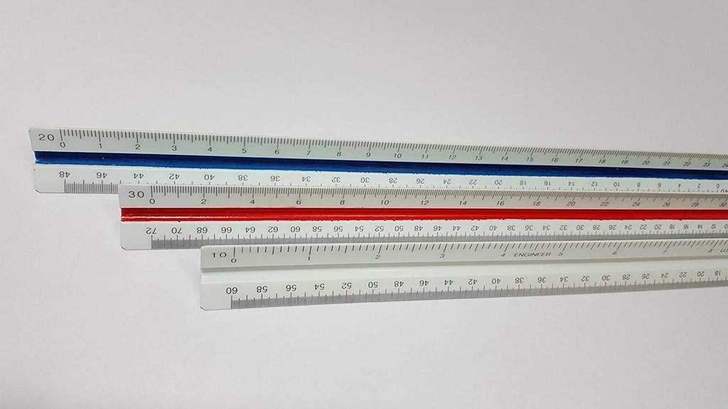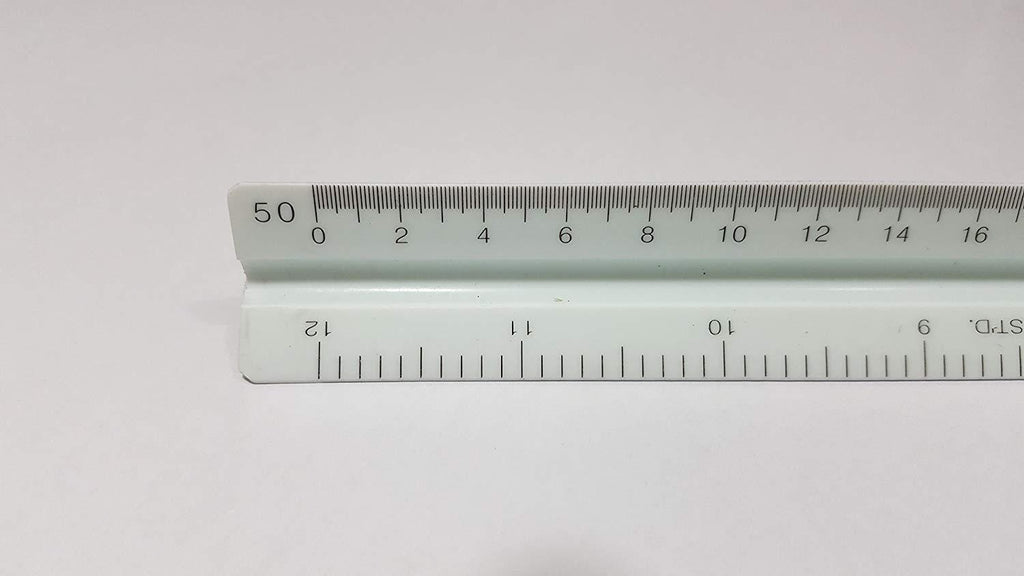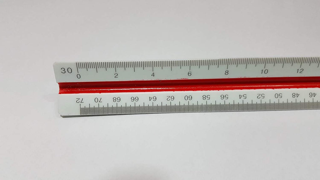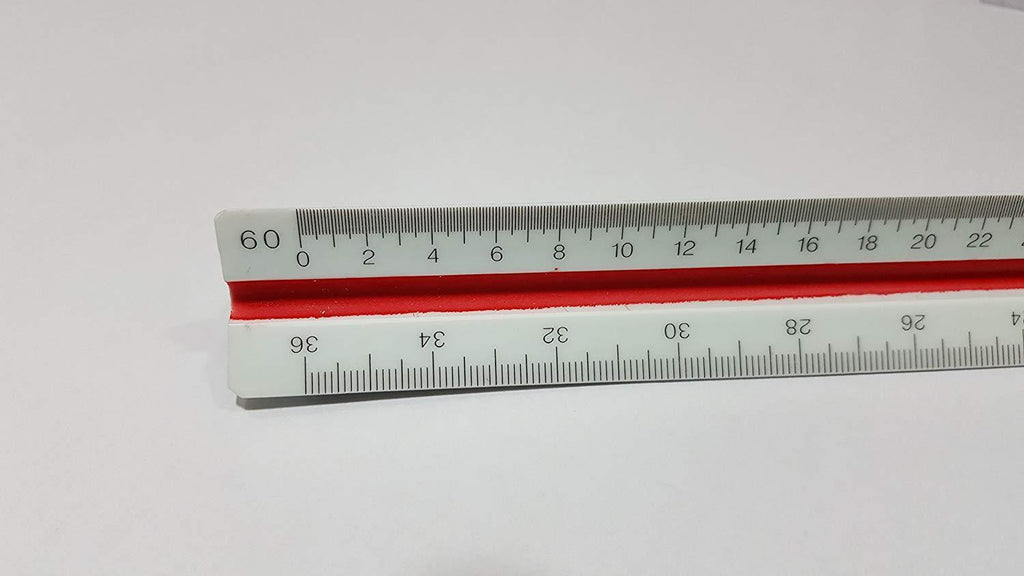 • 12 inch long acrylic Engineering Triangular Scale Ruler with fractions of an inch 10, 20, 30, 40, 50, 60. Designed for accuracy and longevity. The design is the classic symmetric 3-lobed cross section with 6 scales