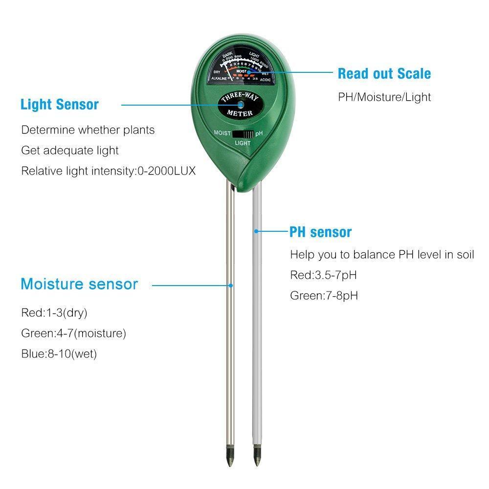 3-IN-1: Soil Tester it can measure the soil moisture, pH, and light levels,so you can take good care of your plants.