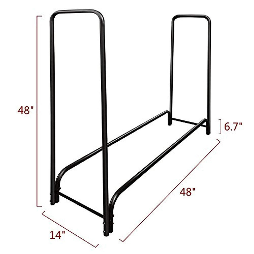 Firewood organized: amagabeli 4' fireplace log rack measures 48 x 48 x 14 inch, 6.7" off the ground for proper ventilation. Heavy duty fire wood log rack with kinding holds and stores up 1/4 face cord of firewood. Perfect size firewood storage rack to fit on outdoor back porch, back yard deck, outside backyard fire pits, under eaves, tool shed, wood shed, chaotic pile inside the cabin, indoor garage, family room, covered patio to hold enough wood for fireplace all seasons.