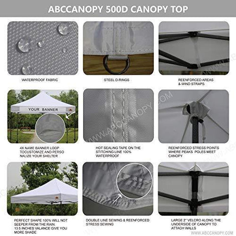 ABCCANOPY 10x10 Pop-up Canopy Tent Commercial Tents with White Mesh Walls Camping Screen & Mesh House Bonus Rolly Carry Bag and 4X Weight Bag (1 White)