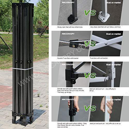 • WHAT'S INCLUDED:10 x 10 Commercial Pop up Canopy Tent + Roller Carry Bag + 4 Sandbags + 4 Ropes + 4 Stakes + 3 Removable Mesh Side Walls + 1 Mesh door wall. WHY BUYING FROM US: Accessories and parts are available for life time. One year warranty and life long service after sale, quick turnaround time,100% satisfaction guarantee. Please don't hesitate to connect us by e-mail.