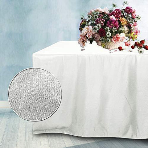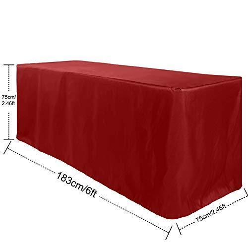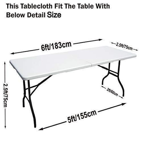 • 2. Material: Polyester tablecloths made from durable 100% polyester material. Easy laundering in your home washing machine-just wash with cold water and household detergent. Nicely Fits Rectangle Folding Buffet Tables, Outdoor Picnic Tables & Dining Room & Kitchen Tables.