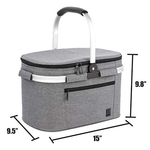 ALLCAMP Large Size Insulated Cooler Bag Folding Collapsible 22L Picnic Basket with Sewn in Frame (Grey)