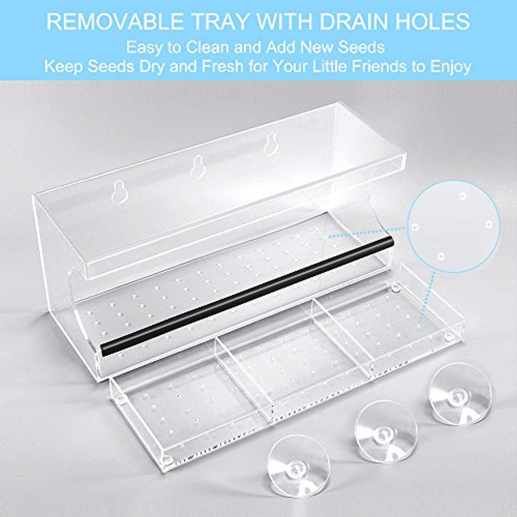 Ankway Durable Acrylic Window Bird Feeder for Outside with 3 Strong Sticky Suction Cups, Removable Tray, Drain Holes for Bluebird Cardinal Bird