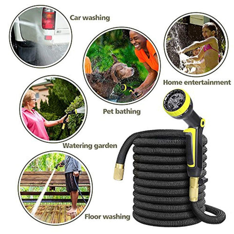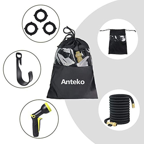 Anteko Garden Hose Strongest Expandable Water Hose 9 Functions Sprayer with Double Latex Core 3/4" Solid Brass Fittings Extra Strength Fabric - Improved Expanding Hose †¦ (100 FT)