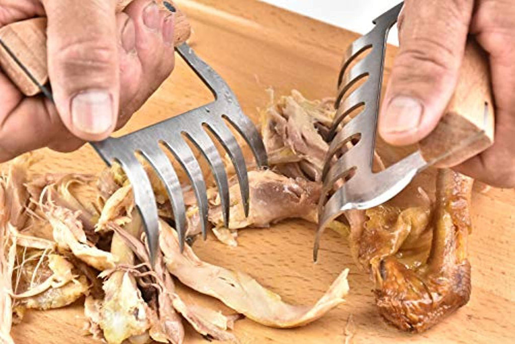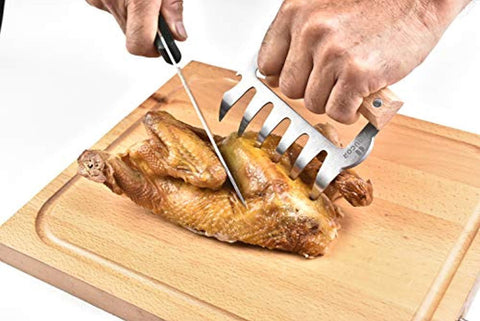 【ERGONOMIC】 The large bear claw shaped prongs never slip, and are much safer than using a fork to hold and carve hot meats. Use the claws to avoid burning your hands and fingers when barbecuing meats, and to prevent accidents like dropping a piping hot turkey when using forks or oven mitts.