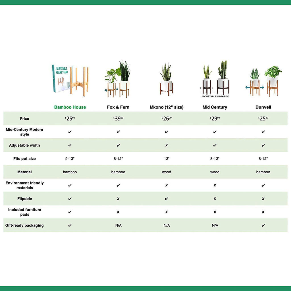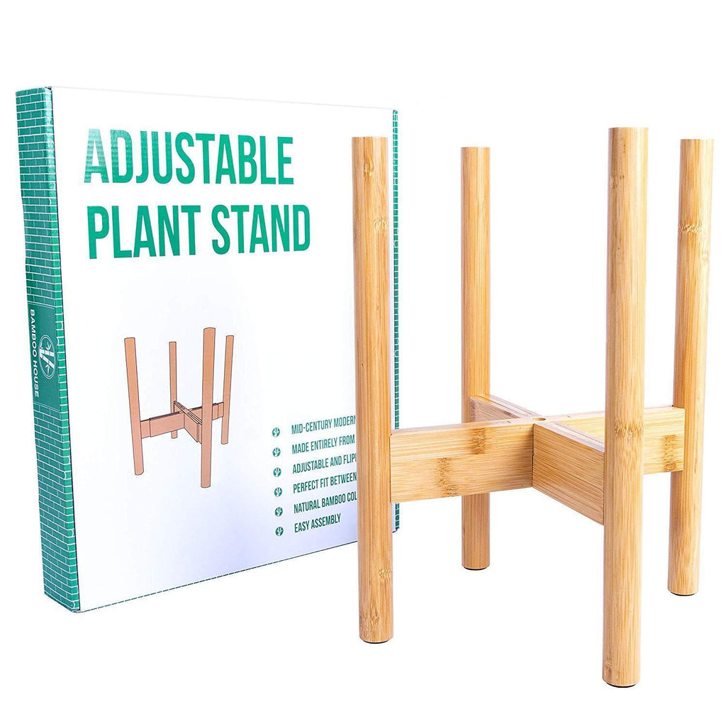 Bamboo House Mid-Century Style Adjustable Width Plant Stand Between 9-13" Made from Bamboo - Modern Home Decor, Elegant Flower Pot Holder, Fits Medium to Large Pots - EXCLUDING Plant Pot