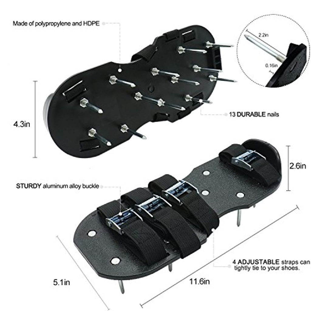 Blissun Lawn Aerator Shoes, 4 Aluminum Alloy Buckles Spiked Aerating Lawn Sandals, 26 Nails for Aerating Your Lawn or Yard, 4 Adjustable Straps Universal Size