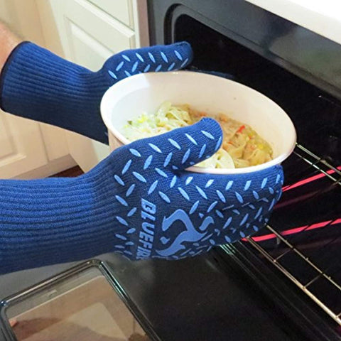 BlueFire Pro Heat Resistant Gloves - Oven - BBQ Grilling - Big Green Egg - Fireplace Accessories and Welding. Cut Resistant, Forearm Protection -100% Kevlar Certified 932°F Heat Resistance
