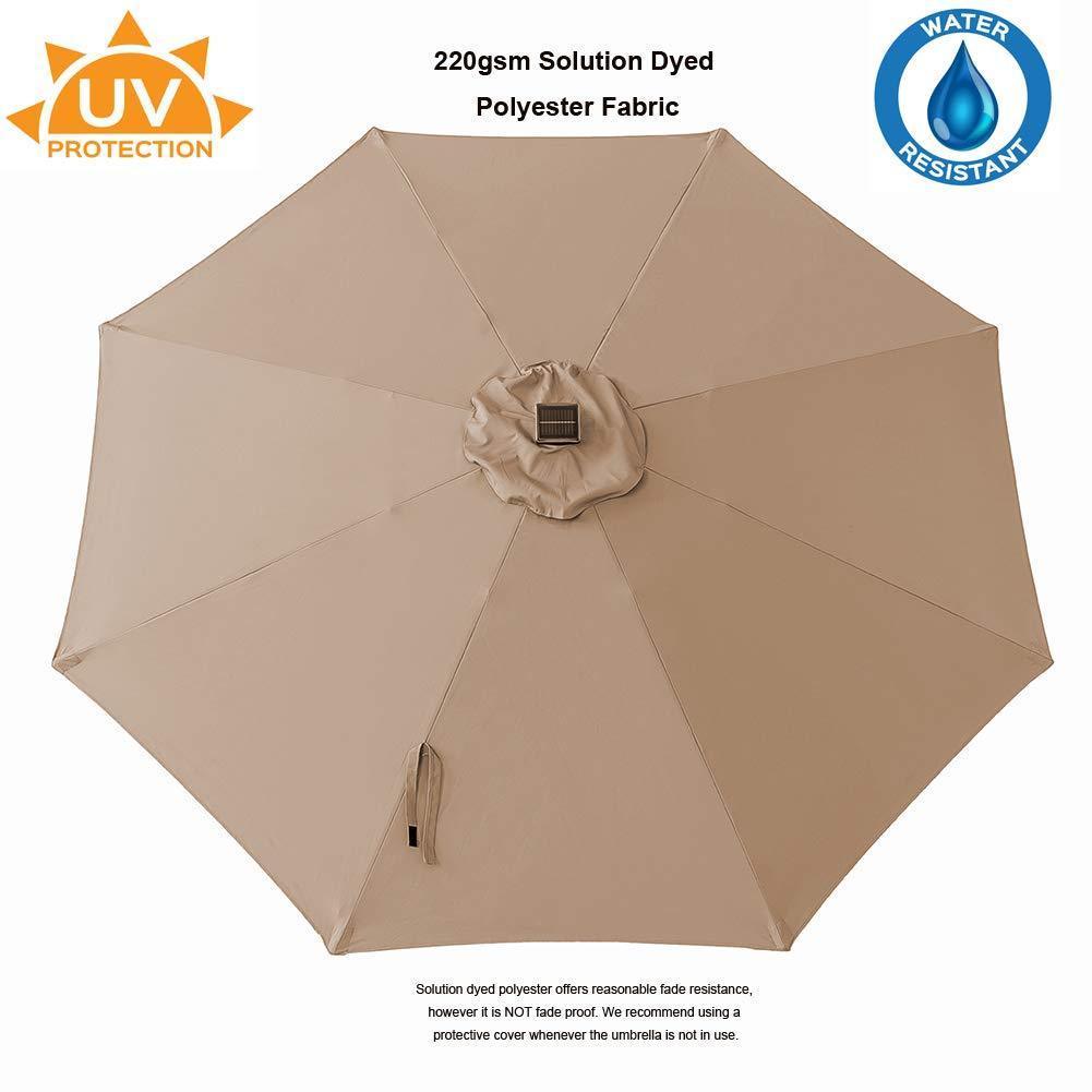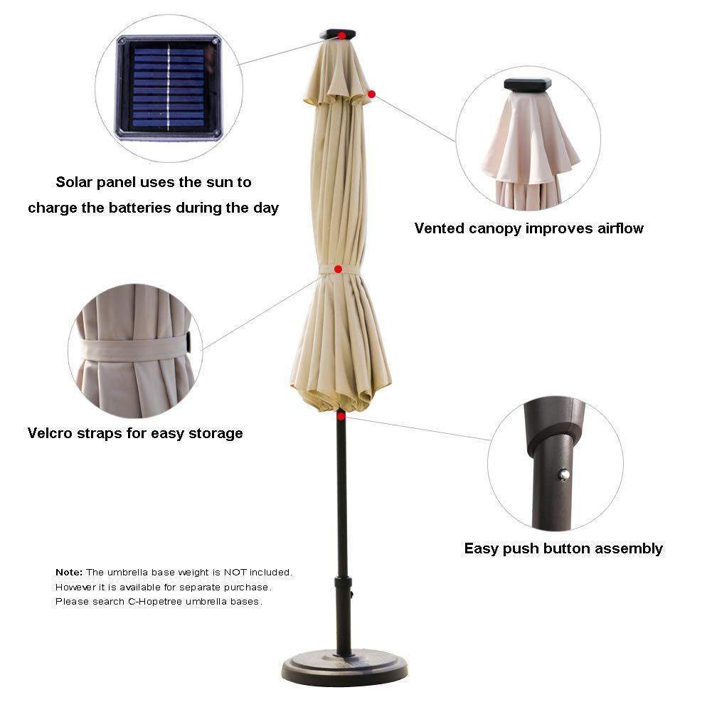 C-Hopetree 9ft LED Lighted Solar Outdoor Patio Market Umbrella for Balcony Table Deck Garden Shade or Pool with Tilt, Beige