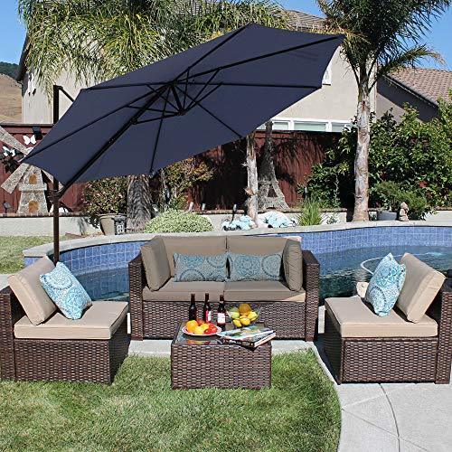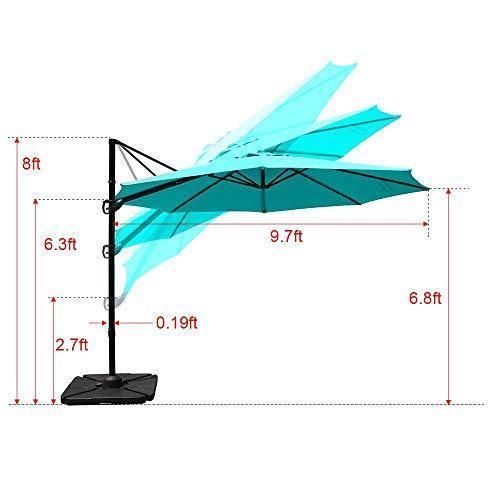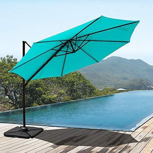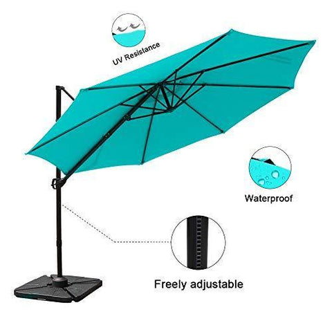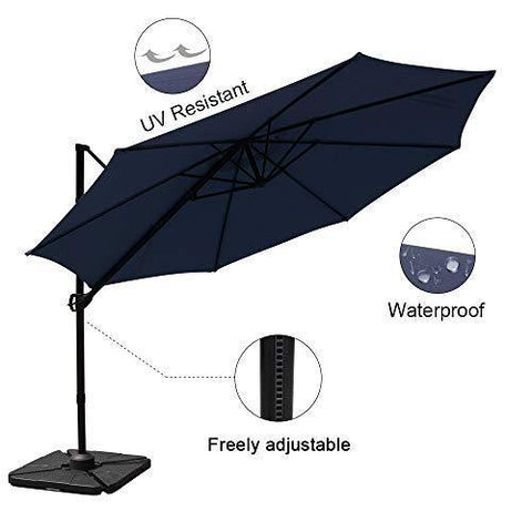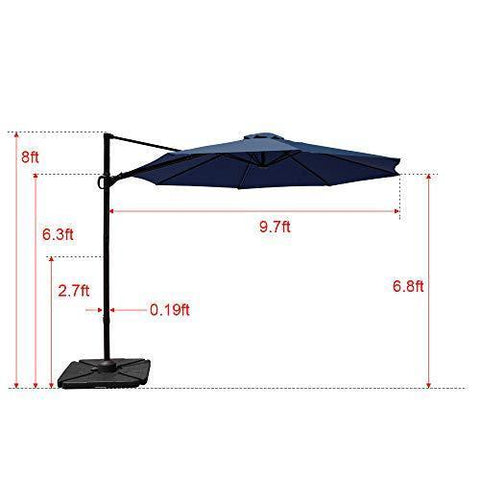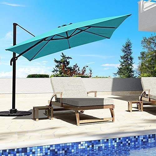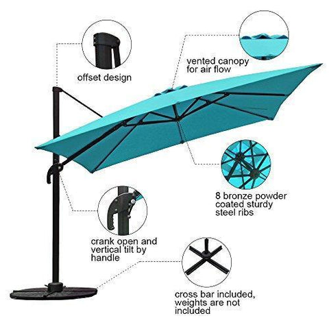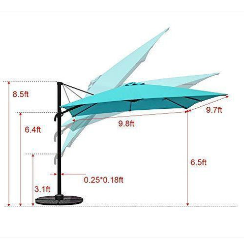 COBANA Offset Rectangular Cantilever Aluminum Patio Umbrella 10 Feet with Cross Base and 360 Degree Rotation, Blue