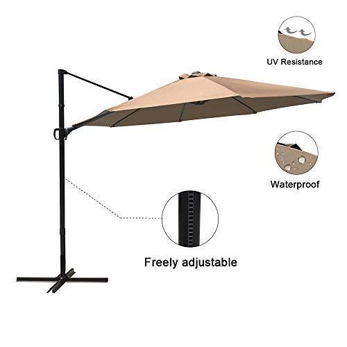 EASY OPERATION: Comfortable crank handle is really easy to open and close the umbrella. The detachable main pole freely adjustable tilt mechanism and 360 degree rotation pedal for easy operation.