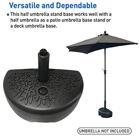 VERSATILE AND DEPENDABLE - Fitting securely up against a wall, this half umbrella stand base works well with a half umbrella as a patio umbrella base stand or a deck umbrella base.