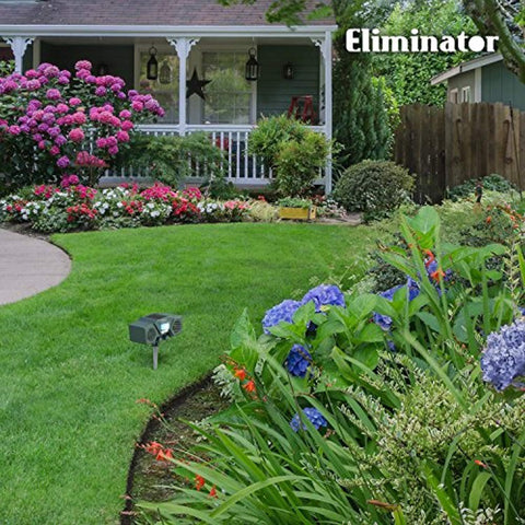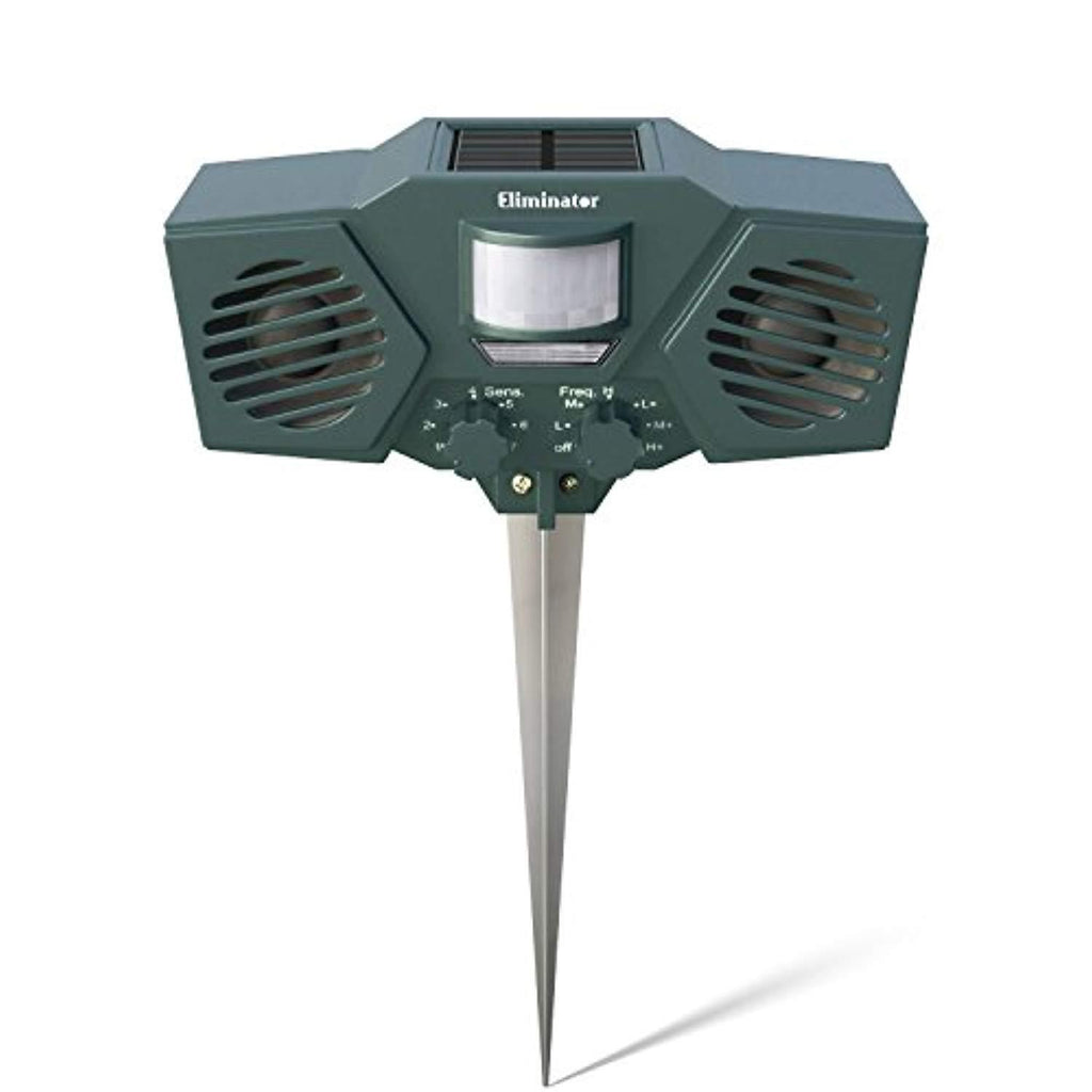 • Permanently eliminate pest problems with this powerful ultrasonic/flashing light animal repeller. Get rid of Cats, Dogs, Deer, Birds (Pigeons, Woodpeckers, Seagulls, etc.), Bears, Squirrels, Rabbits, Skunks, Bats, Rats, Foxes, Raccoons, Mice and much more. The Eliminator pest repeller is extremely powerful and will expel even the most aggressive animals from your property. / Upgraded for top performance.