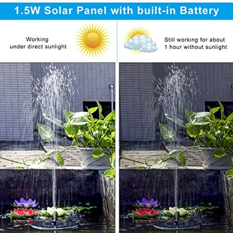 findyouled Solar Fountain Water Pump, 1.5W Free Standing Bird Bath Fountain Pump with Battery Built-in, Works in NOT Direct Sunlight
