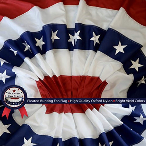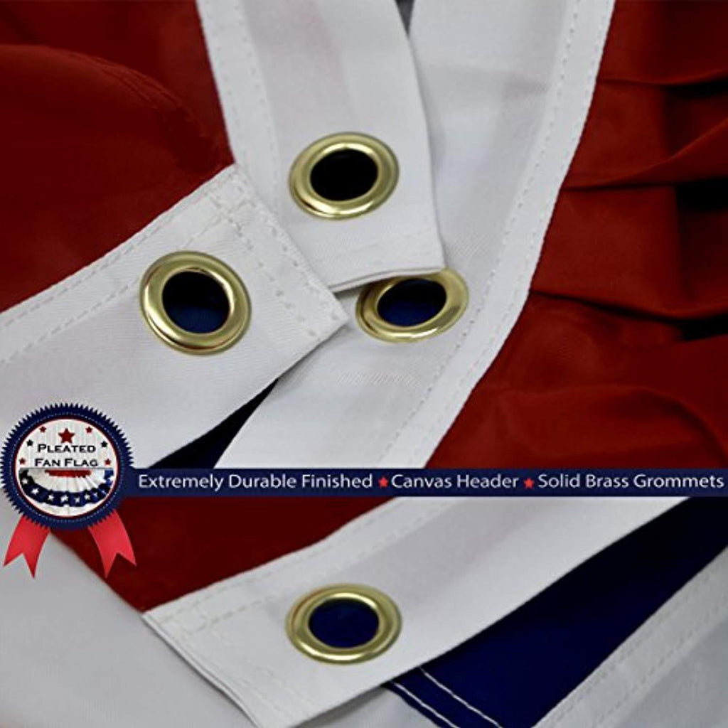 DESIGNED FOR DURABILITY: This pleated bunting American fan flag is made of waterproof 210D Polyester with 3 heavy-duty brass grommets. It is great for displaying indoor or hanging for outdoor use.