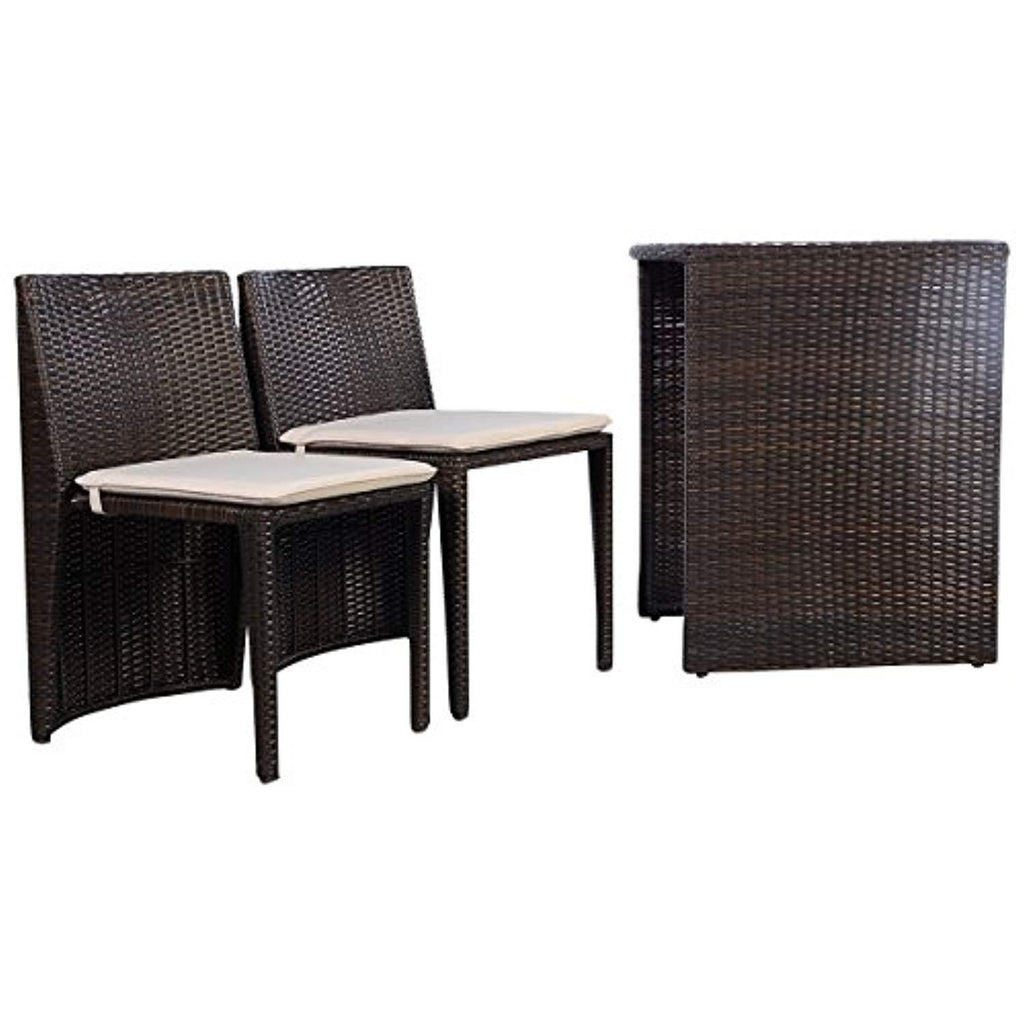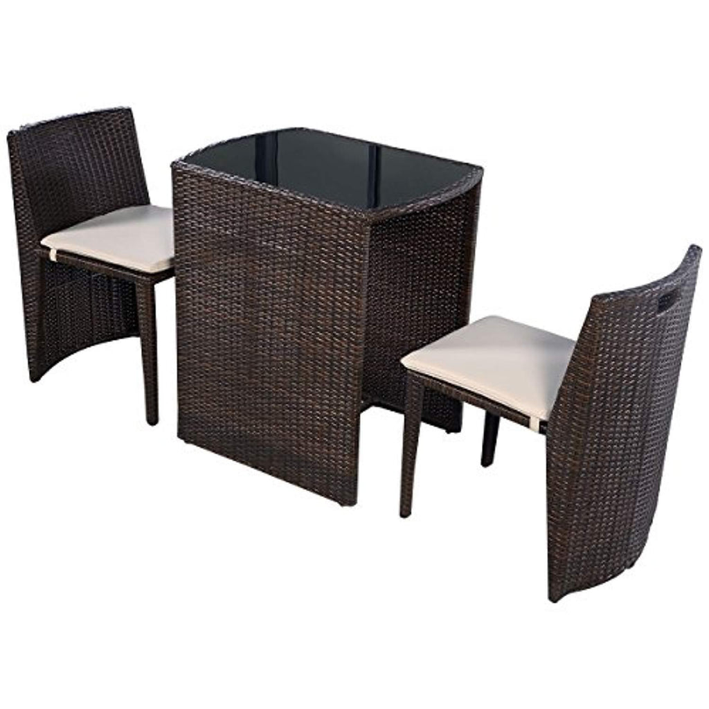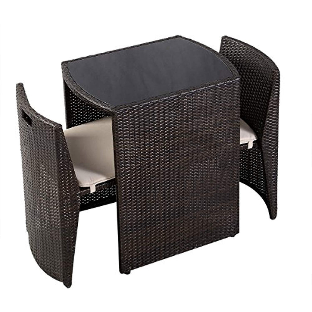 【Material】This is our brand new and durable 3 piece patio set with cushions for each chair.It was designed with several materials polyfiber, sponge, steel and wicker