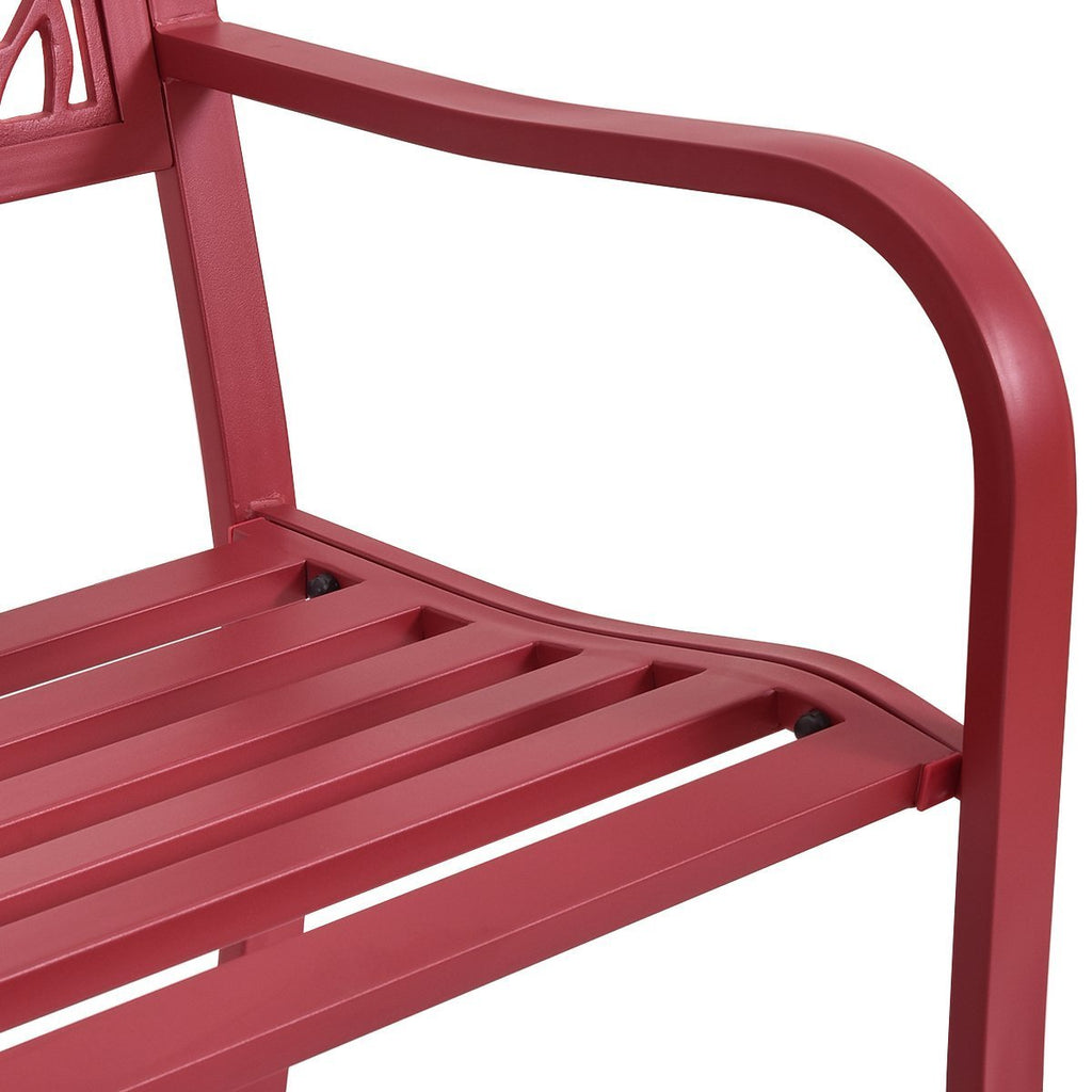 Powder-Coated Metal Construction- Our garden is mainly made of high-quality steel and cast iron which is solid enough. It is also with red powder coating that enables the garden bench to be rust and weather resistant. Two front legs are integrated with two arms and rear legs are combined with the backrest which constitute a stable and sturdy frame.