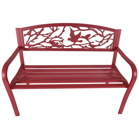 Giantex Patio Garden Bench Park Yard Outdoor Furniture Cast Iron Porch Chair (Red)