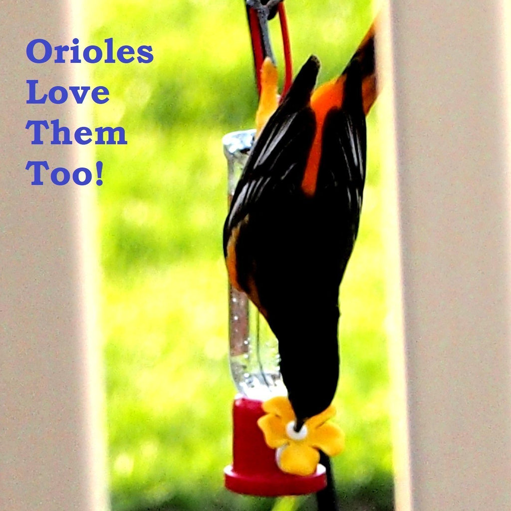 QUALITY: Premium grade hard plastic will keep your liquid nectar safe and secure. Safer than glass feeders. Angled flower nozzle design looks natural and offers ease in feeding. Works great with our window mounted suction cup hanger (sold separately). Handheld, miniature design is charming and easy to manage. Also effective in attracting orioles!