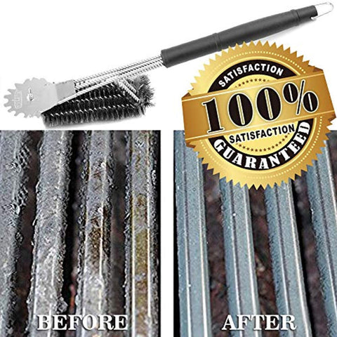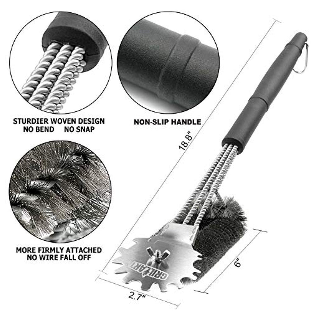 ✅【THE IDEAL HANDLE】: 18.8’’ durable handle keeps your hands away from the heat and use at the perfect angle while offering you a comfortable grip. Allow the use of both hands with minimal effort. Shorter grill cleaning brushes take way too much effort and longer wire brushes are too cumbersome.