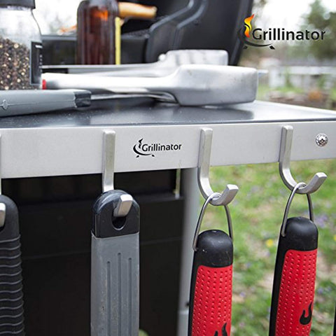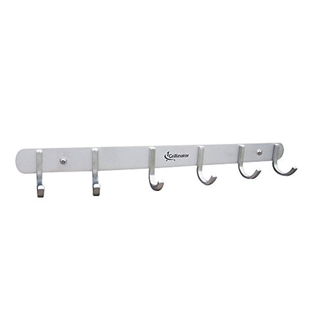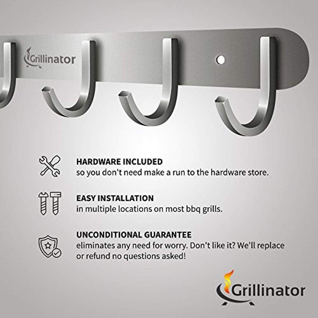 Grillinator BBQ Tool Rack - Brushed Stainless Steel 6 Hook Storage for Grilling & Cooking Utensils - Easy to Install - Gas, Charcoal & Electric Grills - Indoor or Outdoor Use
