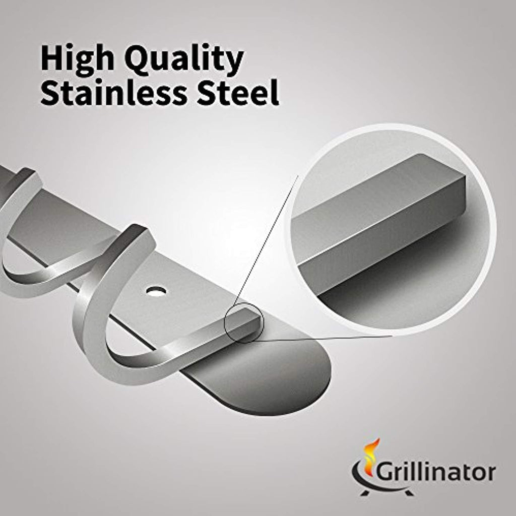 • BUILT TOUGH CONSTRUCTION: While other tool racks come with cheap plastic hooks. And break as soon as you hang anything heavier than a plastic spoon on them - the Grillinator BBQ Tool Rack is made from strong stainless steel. Ideal for both indoor or outdoor use. It can withstand heat as well, unlike plastic