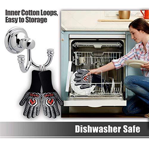 ★Easy on and Easy off: Our BBQ heat resistant gloves, no right or left hand difference, fit most hands, anyone. Hang easily with inside loop.