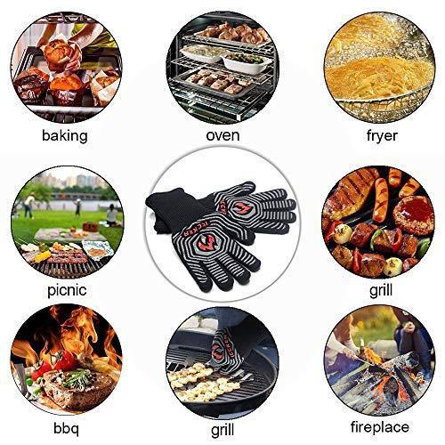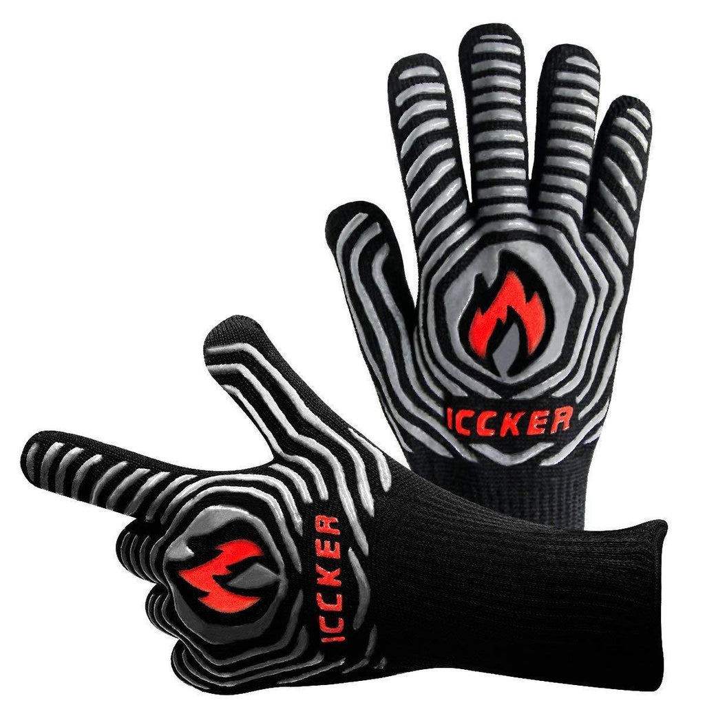 ★Multi-Purpose & Versatile: These oven mitts are just perfect for the fireplace, bonfires, grilling, cooking, baking, broiling, welding, handling that hot topper, and much more! Whether you're grilling steak, barbecuing ribs, beef, pork, frying chicken or baking fish, ICCKER's BBQ gloves provide maximum protection and safety, allowing you to handle all heat and all cookware with ease, making it an essential cooking accessory in your kitchen.