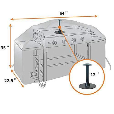 Free Additional 12” support pole to prop up the cover in the middle, to prevent the cover from touching the oily griddle top, also prevent water pooling and pockets that collecting debris. It also helps to reduce inside condensation, keeps your griddle dry all the time.
