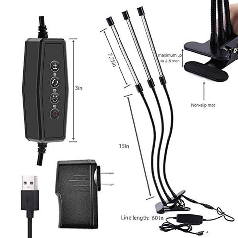 【GREAT DESIGN】-- 27W High power & high efficiency. Space saving & elegant design. This 3-lamp with 360 degree flexible neck and clamp is easy to adjust and place anywhere. The Wide linear light design let it can cover a larger area and provide energy for more plants, easy to install at your home or office.