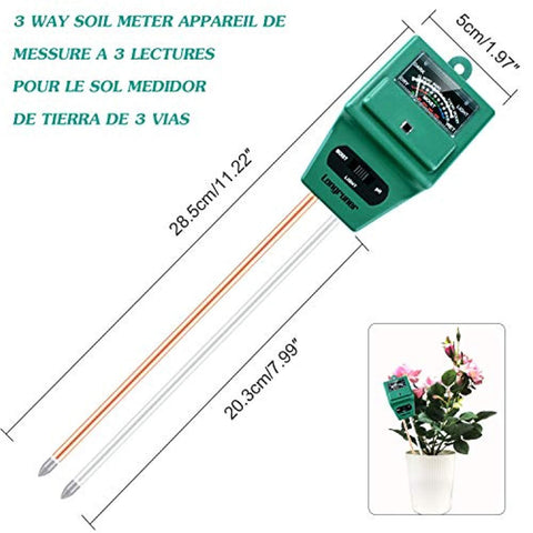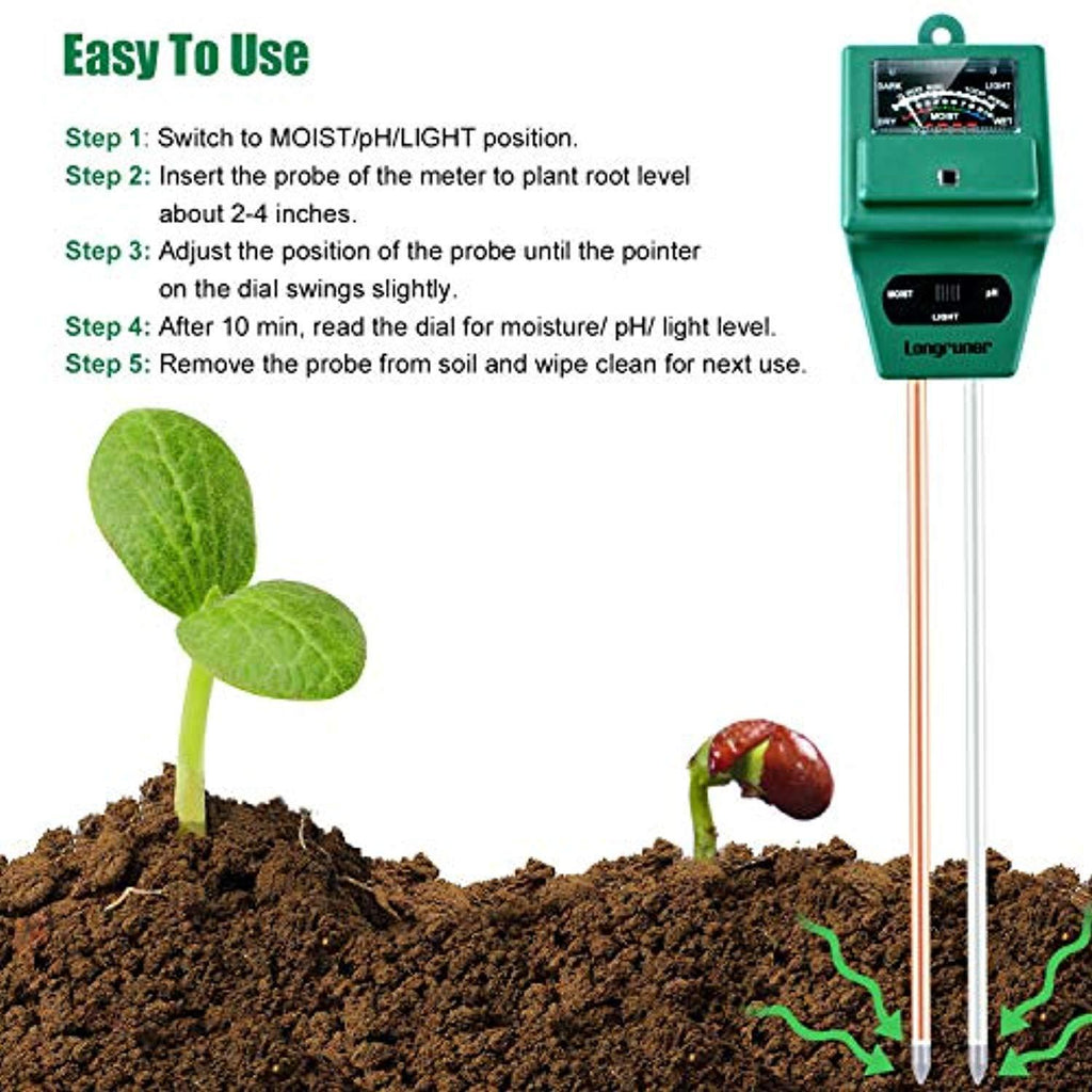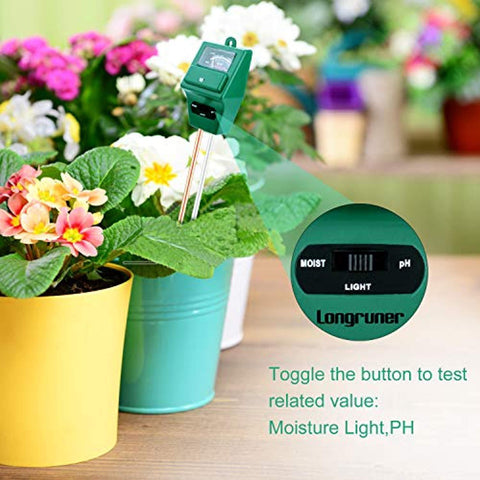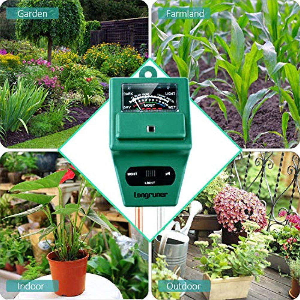 Longruner Soil Moisture PH Meter, 3-in-1 Plant Moisture Sensor Meter/Light/PH Tester for Home, Garden, Lawn, Farm, Indoor/Outdoor(No Battery Needed) LKP03