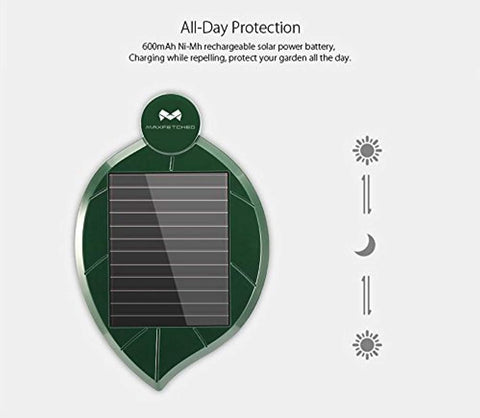 THEORY: This Upgraded Solar Snake repellant Ultrasonic Outdoor vibrates and emits 400-1000 HZ variable low-frequency sonic pulses every 40-50 seconds to repel burrowing rodents living underground. It is safe for use around pets and children. No chemicals, no poison, no sprays or traps, no dead animal; Application: Farm, Garden, Park, Lawn, Yard, etc. Repel: Mole,Snake, Rodent, Rat, Gopher.