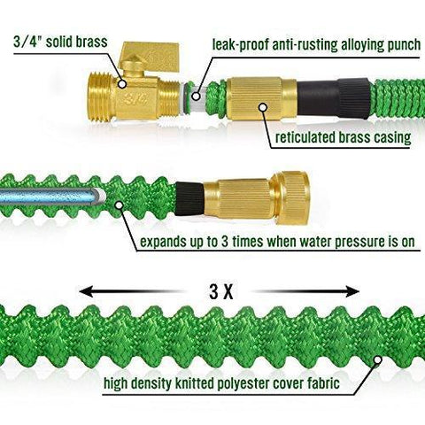 MoonLa 50ft Garden Hose, Expandable Water Hose with 3/4" Solid Brass Fittings, Extra Strength Fabric - Flexible Expanding Hose with Free Storage Sack