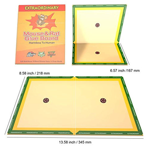 ECO-FRIENDLY: Scent free, non-poisonous, hypoallergenic glue trap. Suitable for places where poisons or snap traps are prohibited or discouraged like food factories, restaurants, hospitals etc. Vegetable oil will dissolve the glue if needed.
