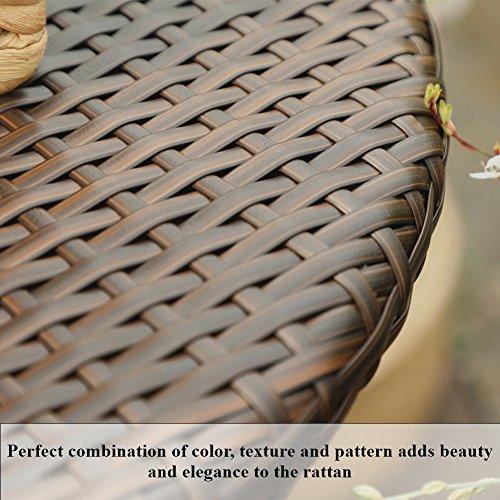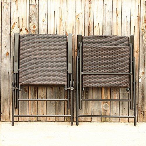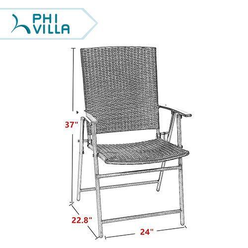 Overal size: D24" x W22.8" x H37" Powder coated paint is hard to scratched off and promises more than 5 years guarantee against rust Heavy-duty yet light weight construction frame holds up to 250lbs respectively Commercial grade rattan wicker rain and dampness resistant possess a long life and band new look Pre-assembled, works well for seating at a table or just casual use and fold up nicely for store