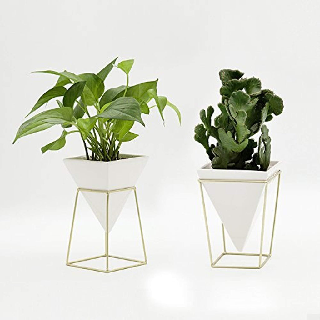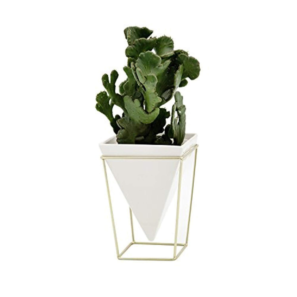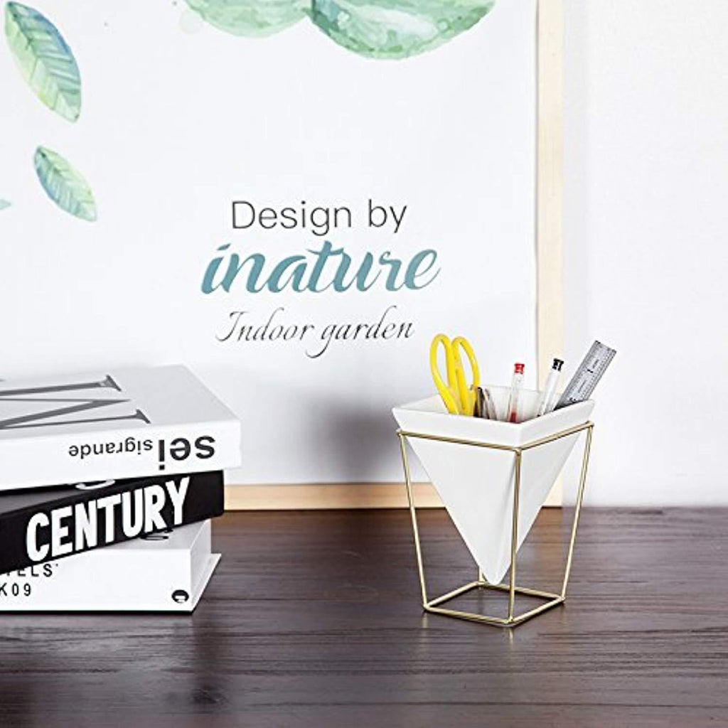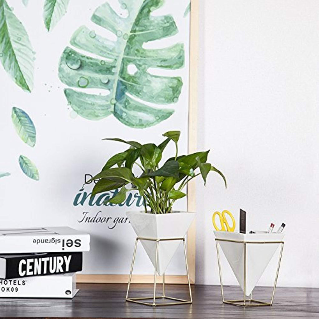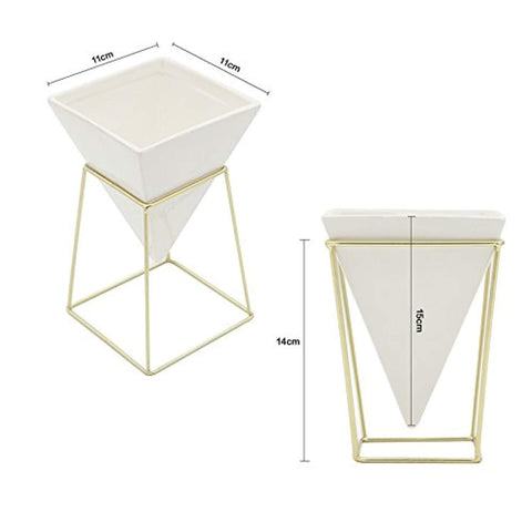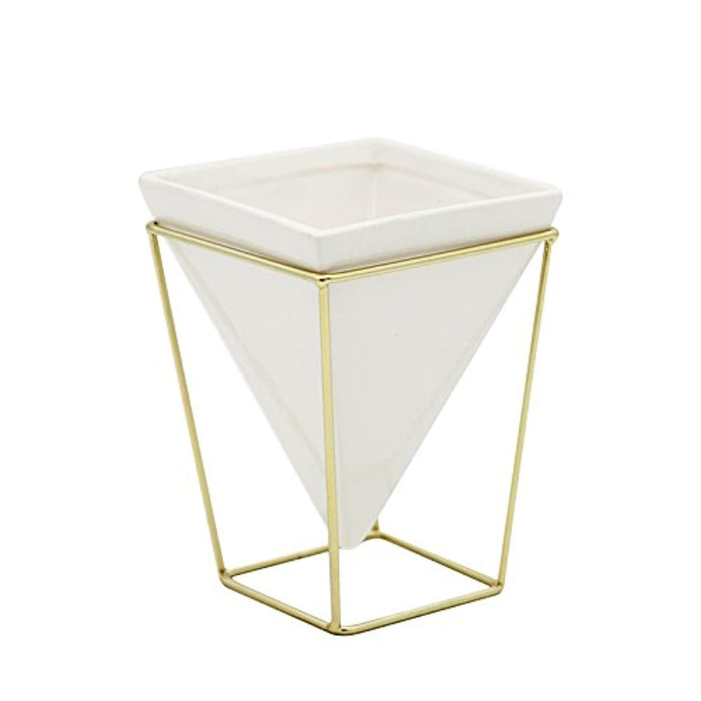 A modern desktop planter with a geometric shape.Minimalist look that fits many styles. Beautiful white planter pot for succulent, cacti, and air plants. Perfect for the office, kitchen or the bedroom! Made of durable and high quality white ceramics and iron, characteristics of the corrosion resistance and durable.