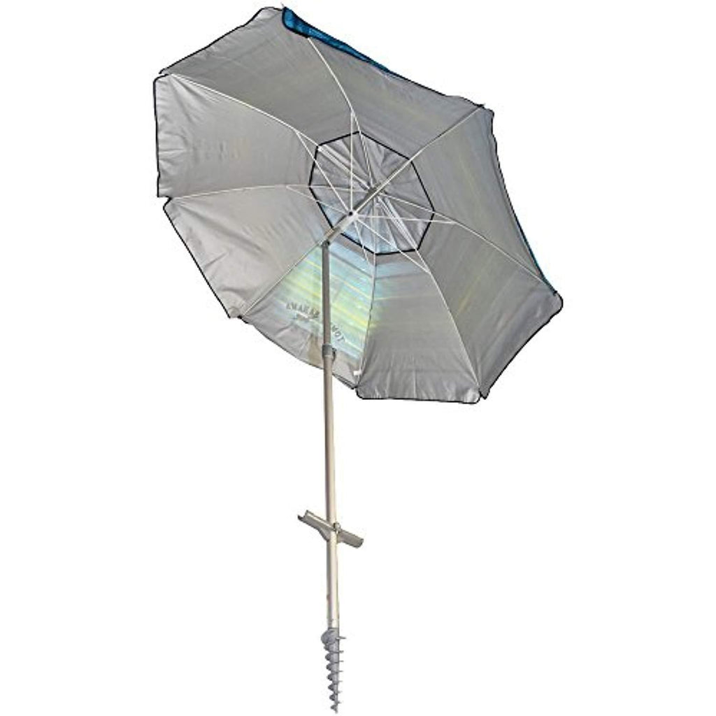 • beach umbrella features a silver lining for a UPF 50+ sun protection. The Tommy Bahama Beach Umbrella is comprised of a two-part 1 1/4 in. aluminum pole.
