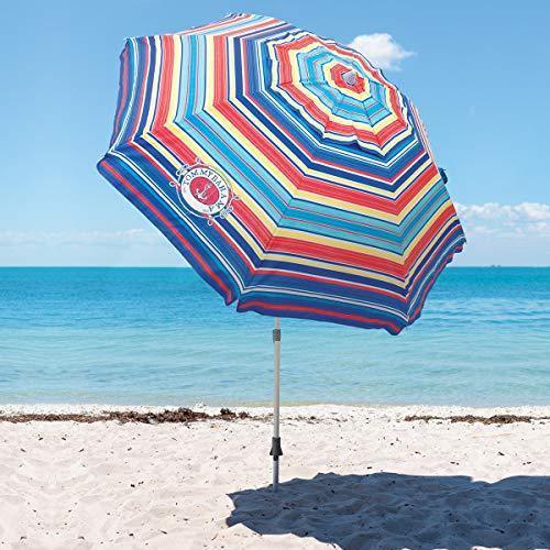 • This 7 foot Tommy Bahama Beach Umbrella has an aluminum pole with fiberglass ribs.