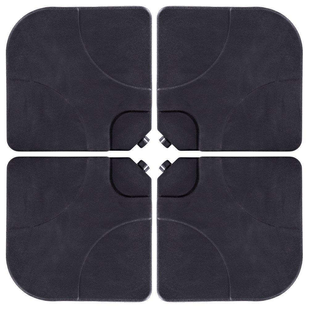 Sundale Outdoor 4 Pieces Heavy Duty Plastic Water Sand Cantilever Umbrella Base Stand (Black with Hooks)