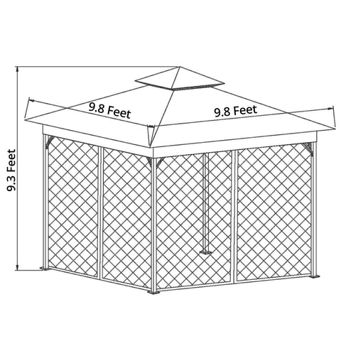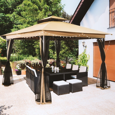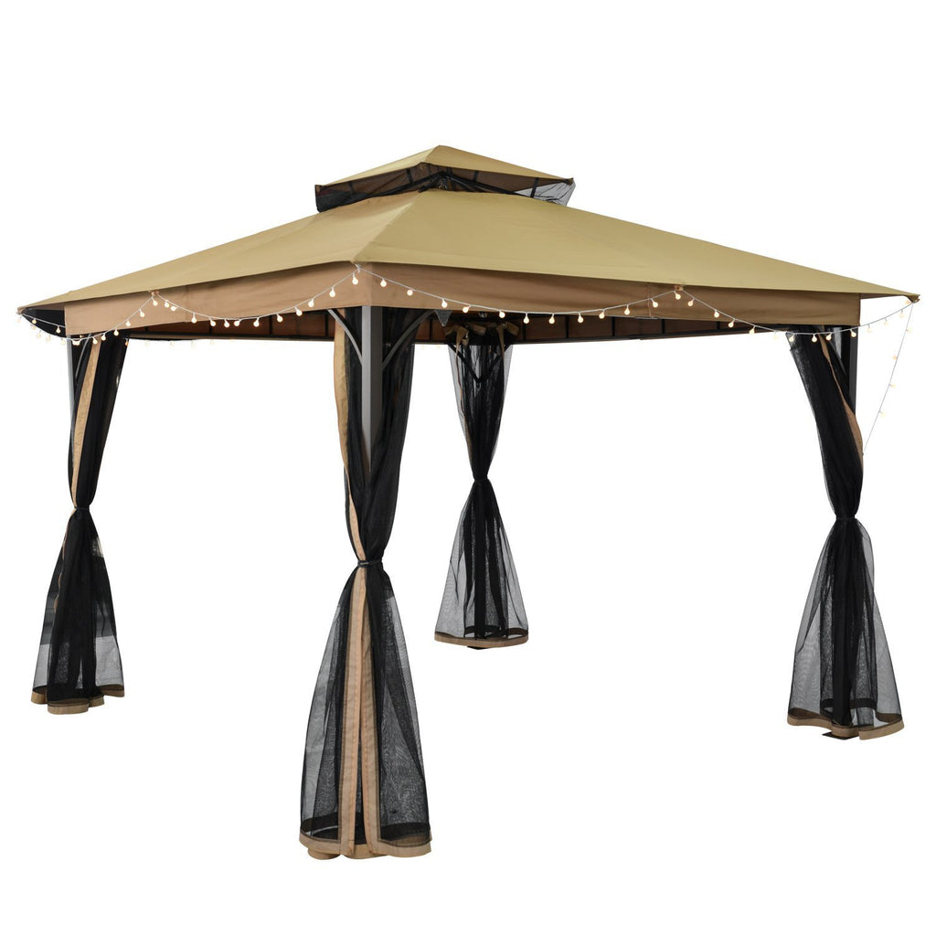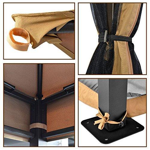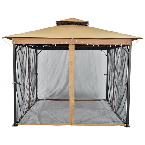 SUNLONO 10 x 10 Ft Outdoor Fabric/Steel Gazebo 2-Tiered Top Canopy with Mosquito Netting Screen Walls, Beige