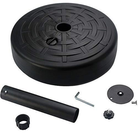 Material: Durable Umbrella Base Stand constructed of UV Stabilized polymer plastic w/ hardened steel umbrella pole insert. Built to withstand all weather conditions