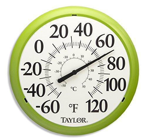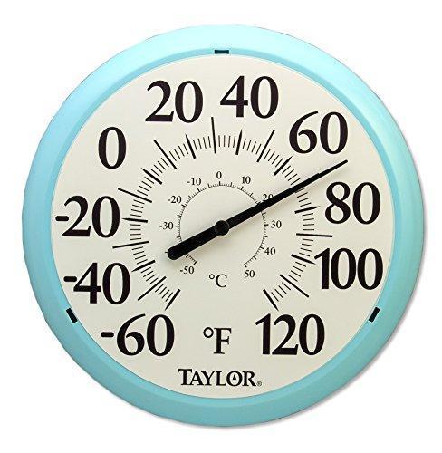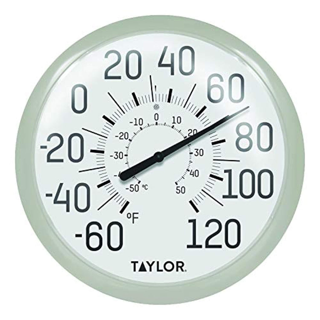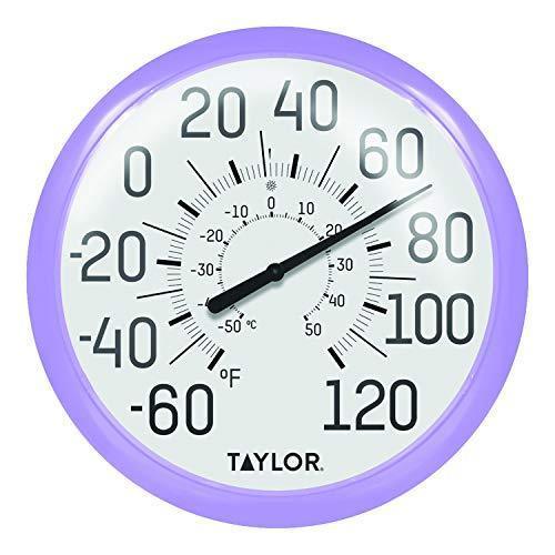 Extra-large 13.25" dial for cross-yard visibility Accurate between -60 and 120°/-50 and 50 C° to accommodate all climates Shatter-proof lens design prevents damage from the outdoor elements Durable, weather-resistant finish will not succumb to snow nor rain nor heat Traditional Silver color with Premium fade resistance