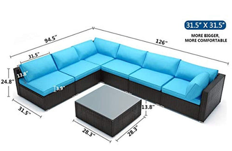 "Tribesigns 7 Piece Outdoor Patio PE Rattan Wicker Sofa, Extra Large Size 31.5’’ x189’’ Sectional Conversation Couch Outdoor Furniture Set with Coffee Table for Garden Poolside (Turquoise) "