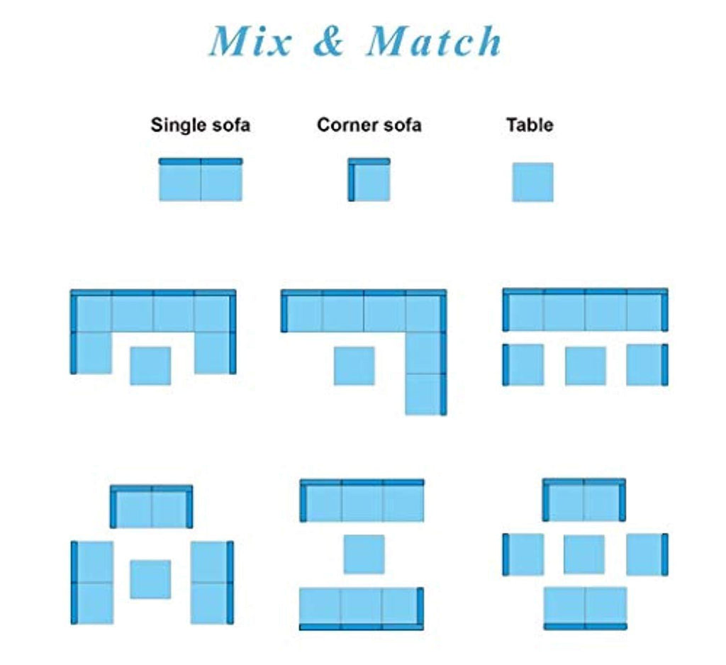 • [Modern 7 Piece Sectional Sofa Set] Outdoor sectional sofa comes with six sofa chairs and one tea table enough to seat 6 or more friends comfortably; 6 piece sofas can be arranged in a variety of ways to accommodate different spaces–from your patio to the backyard or poolside, transformed your patio into a resort style outdoor living space and allow you have a wonderful time with your family or friends!
