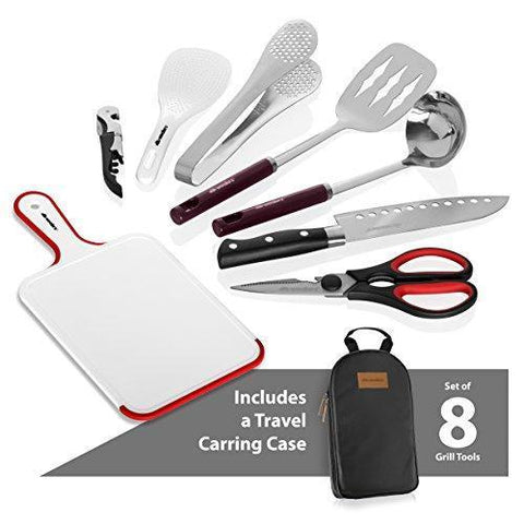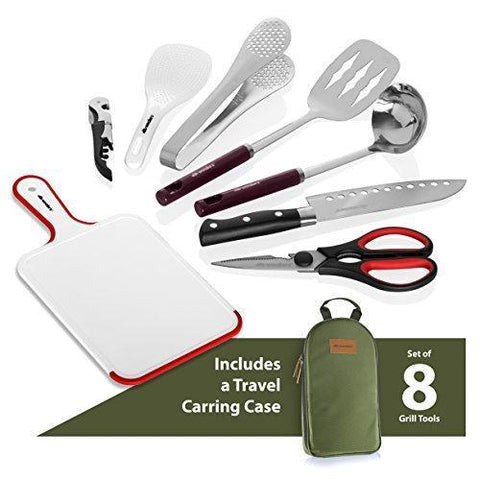 Wealers Camp Kitchen Utensil Organizer Travel Set Portable BBQ Camping Cookware Utensils Travel Kit Water Resistant Case|Cutting Board|Rice Paddle|Tongs|Scissors|Knife and Bottle Opener
