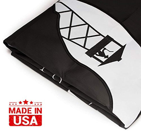 Quality Materials: Double Long-Lasting Anti-Crease nylon fabric material, UV Protected, double sided embroidered Image and letters, stitched stripes and brass grommets. Can resist damp, sea-side, highwind, desert, hail and all outdoors weather, US outdoor flag 3x5