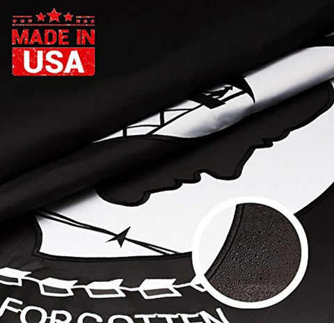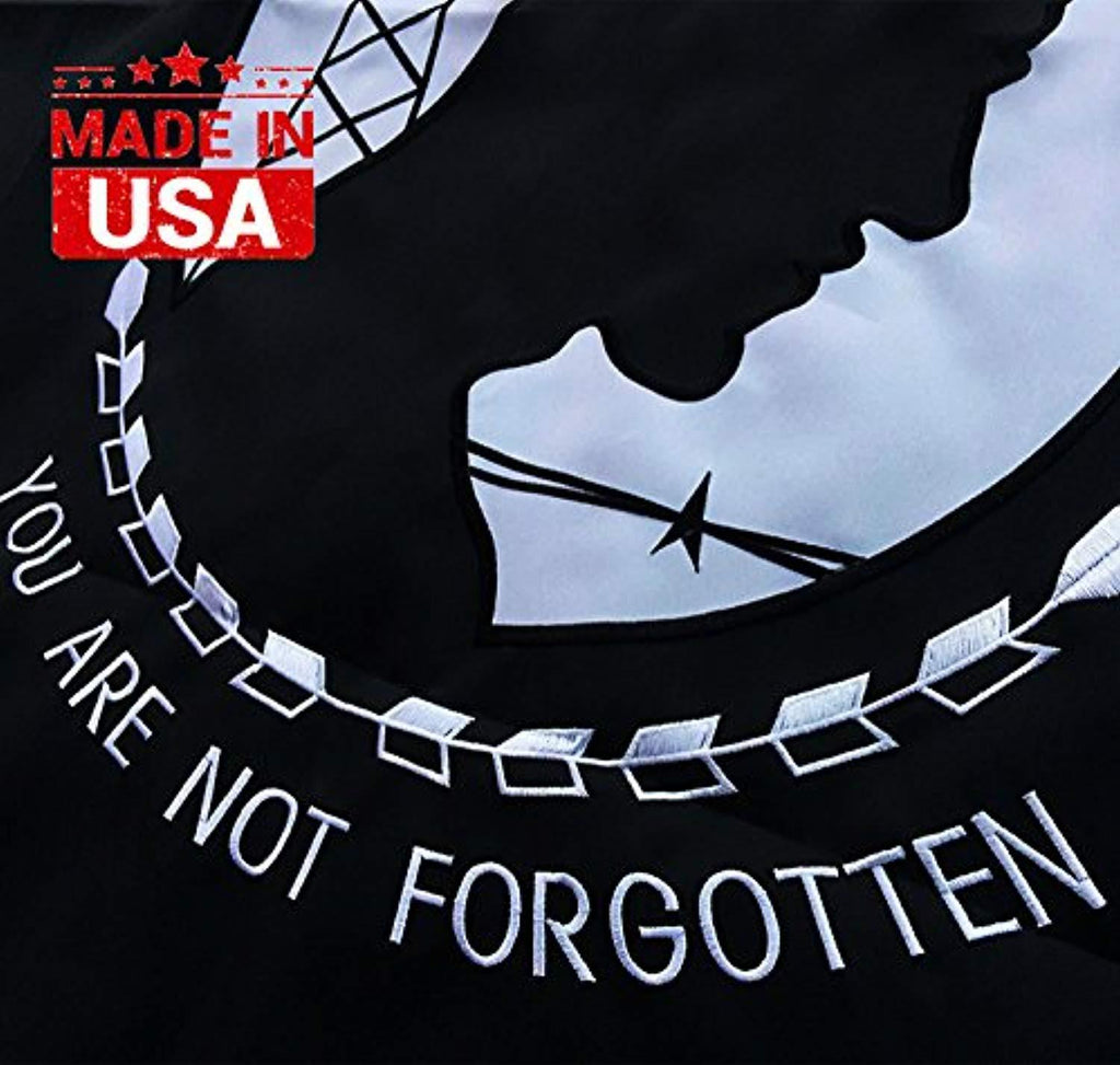 Size: Heavy duty American POW MIA Flag 3x5 ft (36 x 60 inch), Good for gifts, business or personal use. Can use for INDOOR or on the lawn OUTDOOR. Proudly fly this beautiful and durable all weather You are Not Forgotten Flags